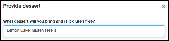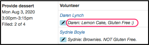 Sometimes it’s useful to have volunteers answer a question when they sign up to volunteer. For example, you might ask what food item volunteers are planning to bring to a school potluck.